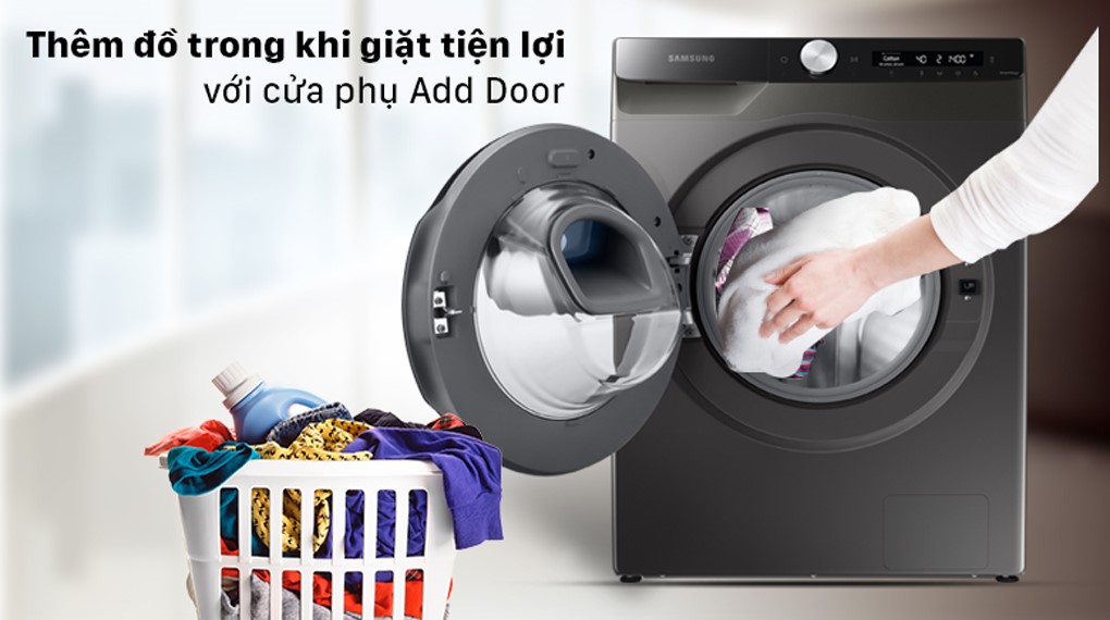Máy giặt Samsung được trang bị cửa phụ Add Wash cho phép thêm áo quần bỏ sót bất kỳ lúc nào mà không phải đợi lần giặt sau. Cẩn thận mở cửa cho thêm đồ khi nhiệt độ trong lồng giặt cao vì lý do an toàn.